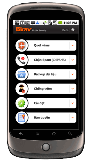 Mà đi dạo quanh thấy có anh BKAV mới phát triển phần mềm diệt virus trên Android nên mang giới thiệu để các bác cùng chạy thử và đánh giá anh BKAV so với mấy anh tây nhé.