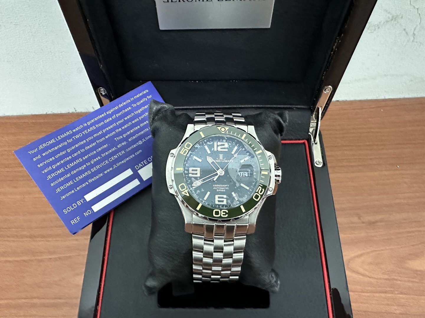 - Bezel ceramic và dial xanh lá cây; máy ETA 2824 Swissmade. Size to 44mm, khuyến cáo anh em cổ tay từ 17 trở lên đeo rất đẹp và menly.