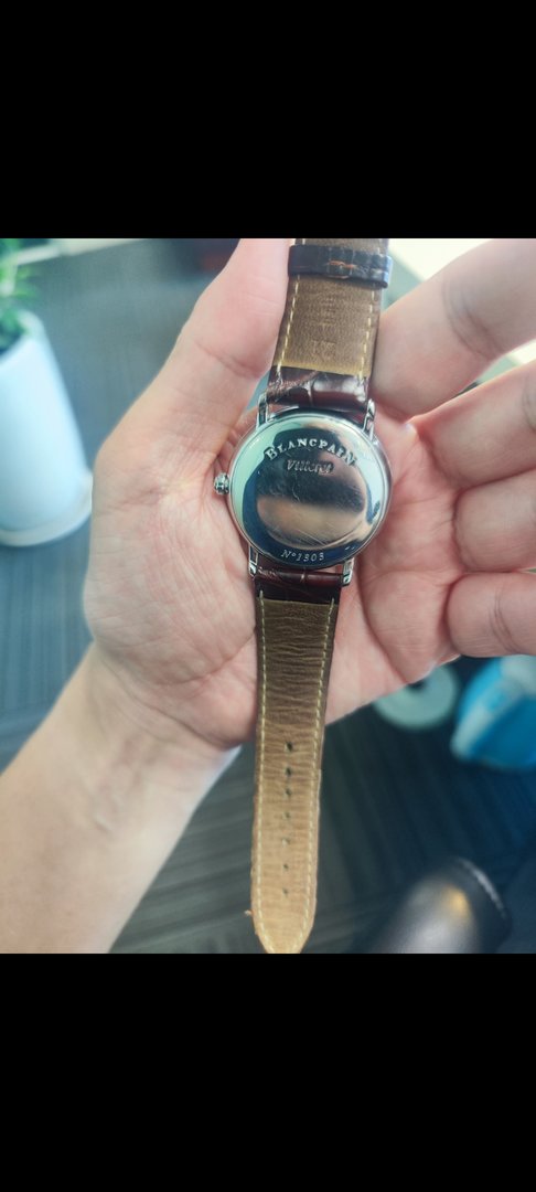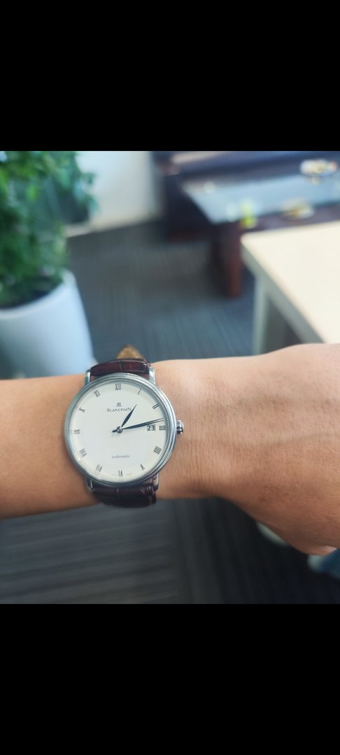 1. Blancpain Villeret size 40mm. Tình trạng còn mới, hoạt động hoàn hảo, có xước dăm nhẹ. Chỉ có đồng hồ và khóa zin. Mua tại cửa hàng HN nên vẫn được bảo hành bthường. Giá 53tr.