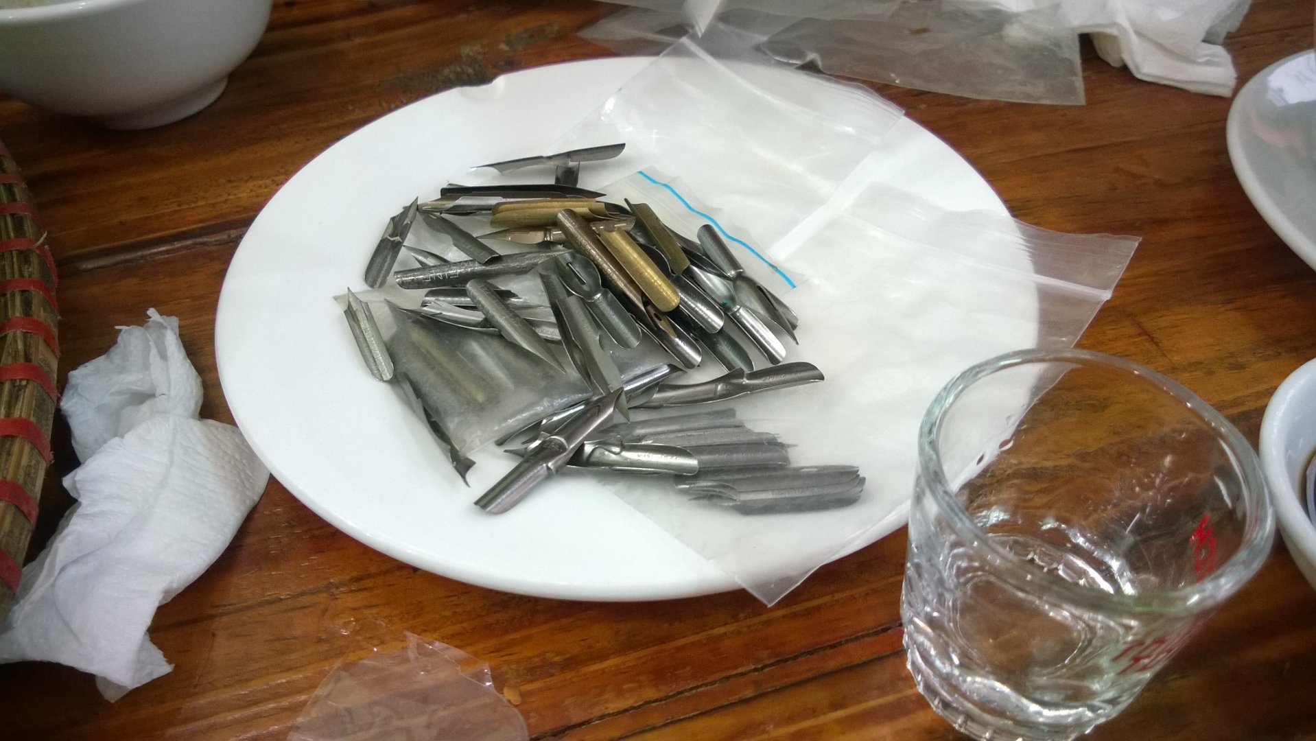 - Thử các loại bút, giấy, mực để chuẩn bị sắm, xin / tặng / cướp chữ / bút / giấy / phụ kiện
