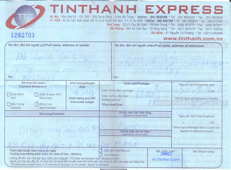 Nội dung ngày 30/10/2006 tôi đặt mua con Laptop Dell C640 từ tên Luận và chuyển trước 5.4 triệu qua TK VCB sau một thời gian mới nhận được hàng và bị lỗi nguồn hoàn toàn không lên chuyển đi chuyển lại 2 lần sau nhiều điện thoại hứa hẹn thì hoàn toàn không khắc phục được. Tôi đã phải đề nghị đến giải pháp đổi các thêm tiền con khác (bảo là hết hàng chỉ có hàng giá 500$ trở lên) nhưng cũng không được phản hồi buộc phải lấy con máy khác cho người quen (mất uy tín). Số tiền không được hoàn trả và vẫn nằm ở đấy, đến ngày 23/12 khi tôi thấy quảng cáo con HP Compaq Mobile Workstation nw8440 tôi đề nghị bù thêm tiền vào giải quyết gọn, và chuyển tiếp 10 triệu qua TK VCB, sau mấy ngày kêu là tranh chấp hàng với nick forever Long thì cũng không lấy được hàng. Tôi bảo không lấy được hàng thì chuyển tiền ra cho tôi nhưng phải sau rất nhiều điện thoại giục trong 2 tuần mới chuyển ra được 10 triệu trong 2 lần, lần thì qua TK lần thì qua tiệm vàng, mặc dù lần nào gọi điện đầu tiên thì cúp máy sau khi nhận điện thoại thì toàn bảo đợi em 1 chút em đã chuyển rồi làm tôi mất công check TK ngân hàng nhiều lần cũng như mấy lần qua tiệm vàng mà không hề có tiền chuyển đến. Sự việc vẫn chưa dừng lại ở đây vì tôi vẫn còn 5.4 triệu ở đó, lại sau rất nhiều điện thoại vâng dạ chuyển rồi lại xoay ra kêu em đang kẹt không có tiền đề nghị tôi lấy hàng bù, không có cách nào tôi đành chấp nhận lấy con IBM R40. Nhưng lần này cũng thế, khi gọi điện thì bảo chuyển rồi nhưng không hề thấy hàng đến (trong 1 tuần) gọi điện thì kêu check số bill của Tín thành gọi qua đó thì họ bảo không có hàng cho 1 số bill đểu check qua web khẳng định rằng của mình (vì trên trang web khi hàng chưa đến tay người nhận chỉ ghi là chưa đến tay) sau mấy ngày hàng đến tay người nhận hiện lên hoàn toàn không phải tên tôi gọi điện lại dở bài tắt máy gọi đến công ty thì nhân viên chuyển điện thoại không trả lời. Nội dung viết dài nhưng tôi muốn đầy đủ chi tiết. Gói gọn lại là tên Luận hiện tại vẫn cầm của tôi 5.4 triệu, nhưng vấn đề này cũng không phải bực mình nhất mà bực mình nhất là cách thức làm việc lừa đảo mỗi lần gọi điện đều nói chờ chút để xử lý, rồi 15 phút nữa, rồi nhân viên của em đi rồi nhưng phải rất lâu mới thực hiện được 1 chút hoặc không hề làm gì, gọi tiếp tắt máy.