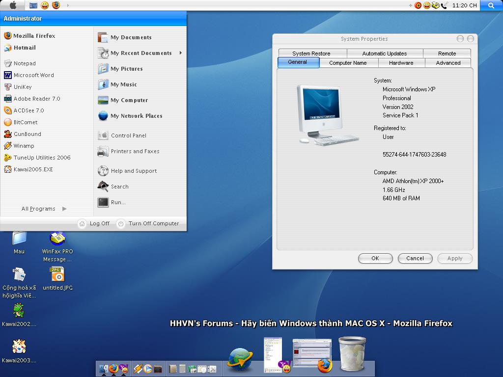 Chào các bác , em lang thang tren net , vào Quantrimang.com thấy có phần mềm hay hay , biến tòan bộ Win XP của các bác thành Mac OS X . Em đang dùng mà cứ tưởng mình đang dùng PowerBook G4 chứ :x