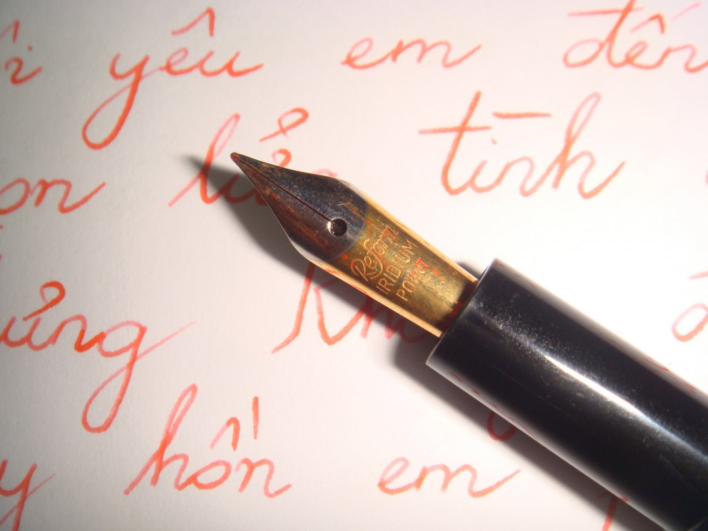 Cái màu đỏ của Pelikan tuỳ thuộc vào giấy bác ạ. Nhiều lúc em thấy nó đỏ rực , lúc nó thấm ít lại màu cam :D