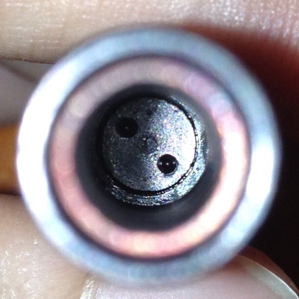 Cám ơn các bác đã tư vấn. Em ngâm bút cả buổi sáng, cuối cùng đã tháo được cái ngòi và feed, chắc nó đóng cặn mực nên bị dính chặt hơn bình thường. Và em dòm vô bên trong thì nó được thế này
