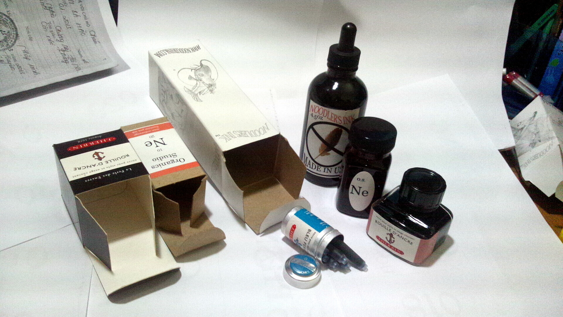 Bác mua Noodle chai có dropper với cả kèm Preppy thì đắt là đúng rồi. Em mua ở Wonderpen chai 3oz = 90ml có $13.75 thôi.Mực ngoại rẻ nhất thì là Pelikan 4001, một lọ 62,5ml tầm 80k, không biết mấy bác khác chê thế nào chứ màu Violet thấy mực khá bền, đẹp thì không bằng mấy lọ J.Herbin nhưng đó là vì gam màu sáng của J.Herbin hợp gu em. Diamine của bác o0saubeo0o tầm 180k, Pilot của bác hung223 tầm 160k là nhóm tầm giá dưới 200k. Lên cao hơn thì vô thiên lủng, từ Sailor đến Edelstein, Caran d' Arche, đứng top là Iroshizuku, 500k cho một bình 30ml. Mực ngoại rẻ nhất tính theo dung tích chắc chắn là Noodler, một bình 130ml giá $21, tặng kèm một cây Preppy giá $3, phong cách Mỹ thực dụng, cái vỏ nhìn rõ rẻ tiền, đổi lại dung lượng khổng lồ, thách bác viết hêt được 1 lọ trong 1 năm.