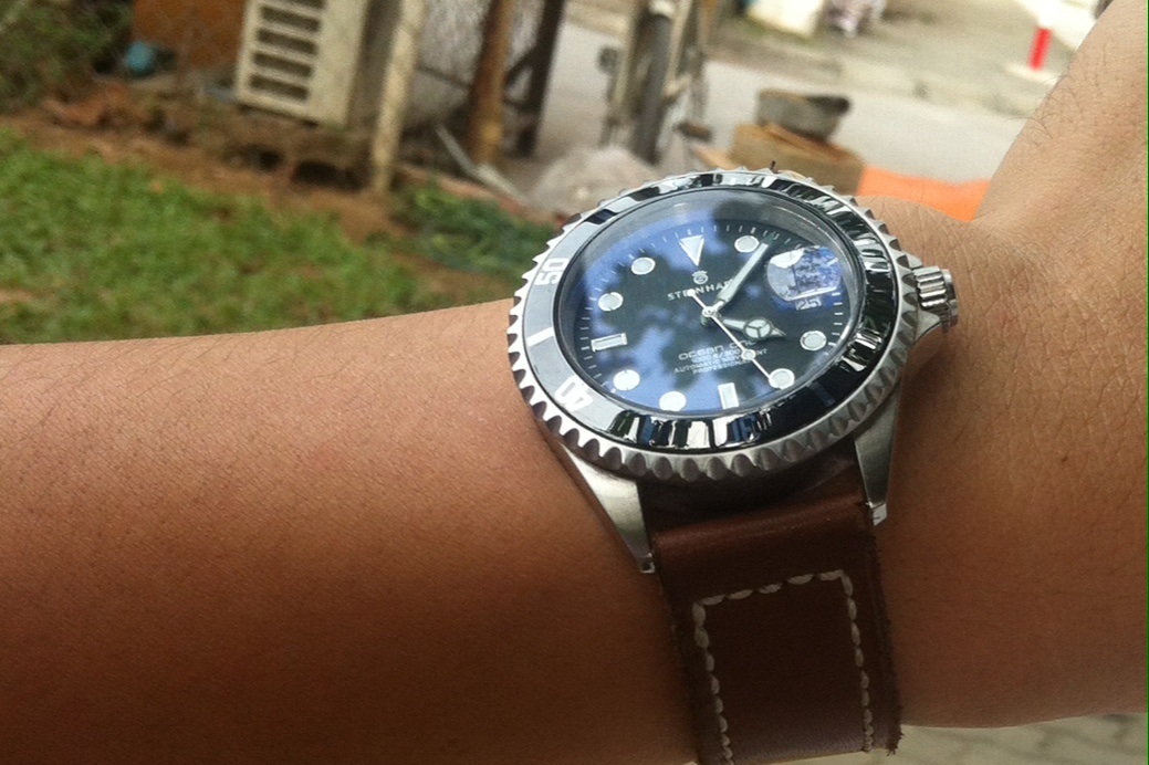 Em cũng đang định đặt 1 chiếc Steinhart Ocean 1 nhưng đang lo nó hơi to so với tay. Bác @Abe02314 có ở HN không? Nếu bác ở HN thì em mời bác cà phê giao lưu và cho em đeo thử chiếc Ocean 1 xem có vừa tay không ạ.Hôm nay e đeo đồng hồ này: