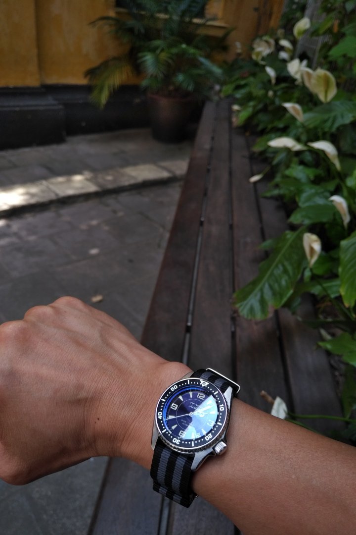 Chiếc này là Seiko SKX013, em mod dial, kim cọc và benzel bác ạ, theo phong cách Blancpain Fiftyfive FathomsEm này của hãng nào và mã gì vậy bác Tuyền?