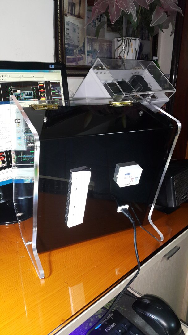 - Khung hộp xoay bằng mica đen bóng 3li, riêng 8 xoay dày 5li sang trọng, nắp mica trong suốt như kính dày 3li có khắc logo sản phẩm