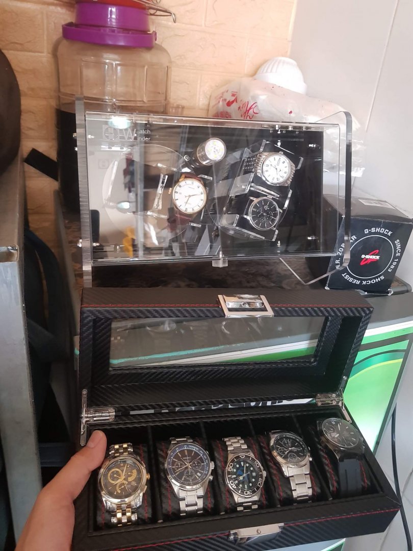Hộp xoay hoàn toàn tự động, sang trọng, bền, đẹp, chắc chắn. Ngắm được toàn bộ đồng hồ xoay từ mọi hướng. Với nhiều chế độ xoay cài đặt theo ý muốn, motor siêu bền, dễ thay thế, dùng đc lâu dài.