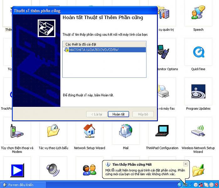 sau đó khởi động lại, bạn vào Control Panel - cho nhận lại thiết bị xem sao nnhé: (Chúc thành công)