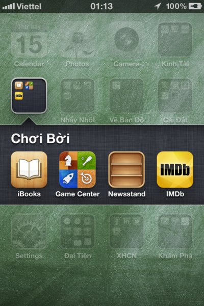 - Chọn biểu tượng của chương trình khác (không phải Newsstand nhé), thả vào một biểu tượng khác (vẫn không phải là Newsstand nhé), để tạo folder mới cho hai ứng dụng này.