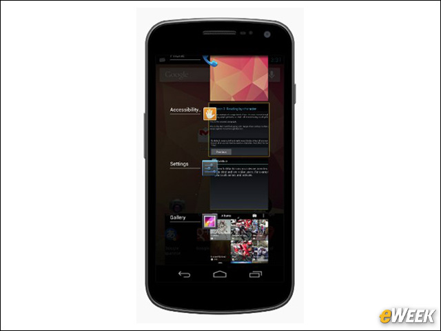 Ứng dụng chụp ảnh của Jelly Bean cũng đã được bổ sung một số tính năng mới rất tiện dụng đặc biệt là khả năng xem ảnh nhanh Filmstrip View. Ví dụ, người dùng có thể xem lại ảnh nhanh chỉ bằng thao tác lướt sang phải ngay tại màn hình chụp mà không cần phải chuyển sang chế độ Review. Hay nếu muốn xóa một hình nào, chỉ cần quét ngón tay từ trên xuống.