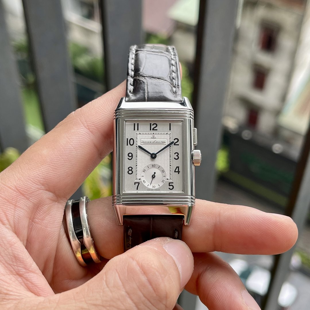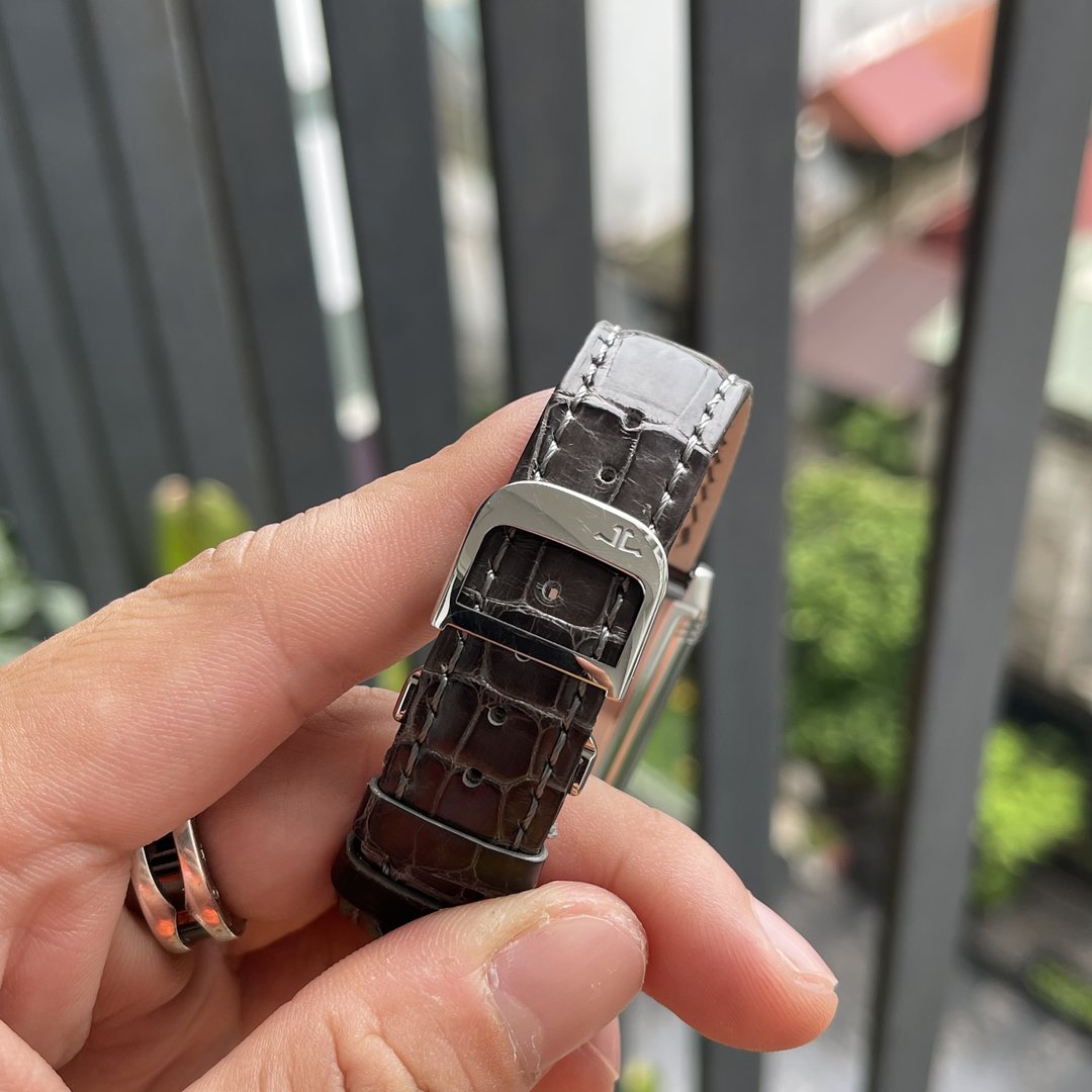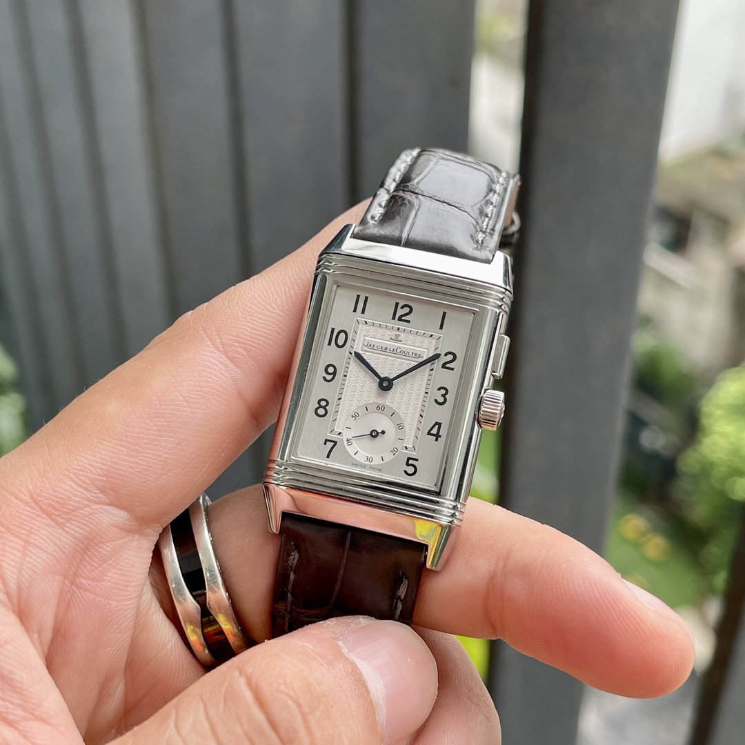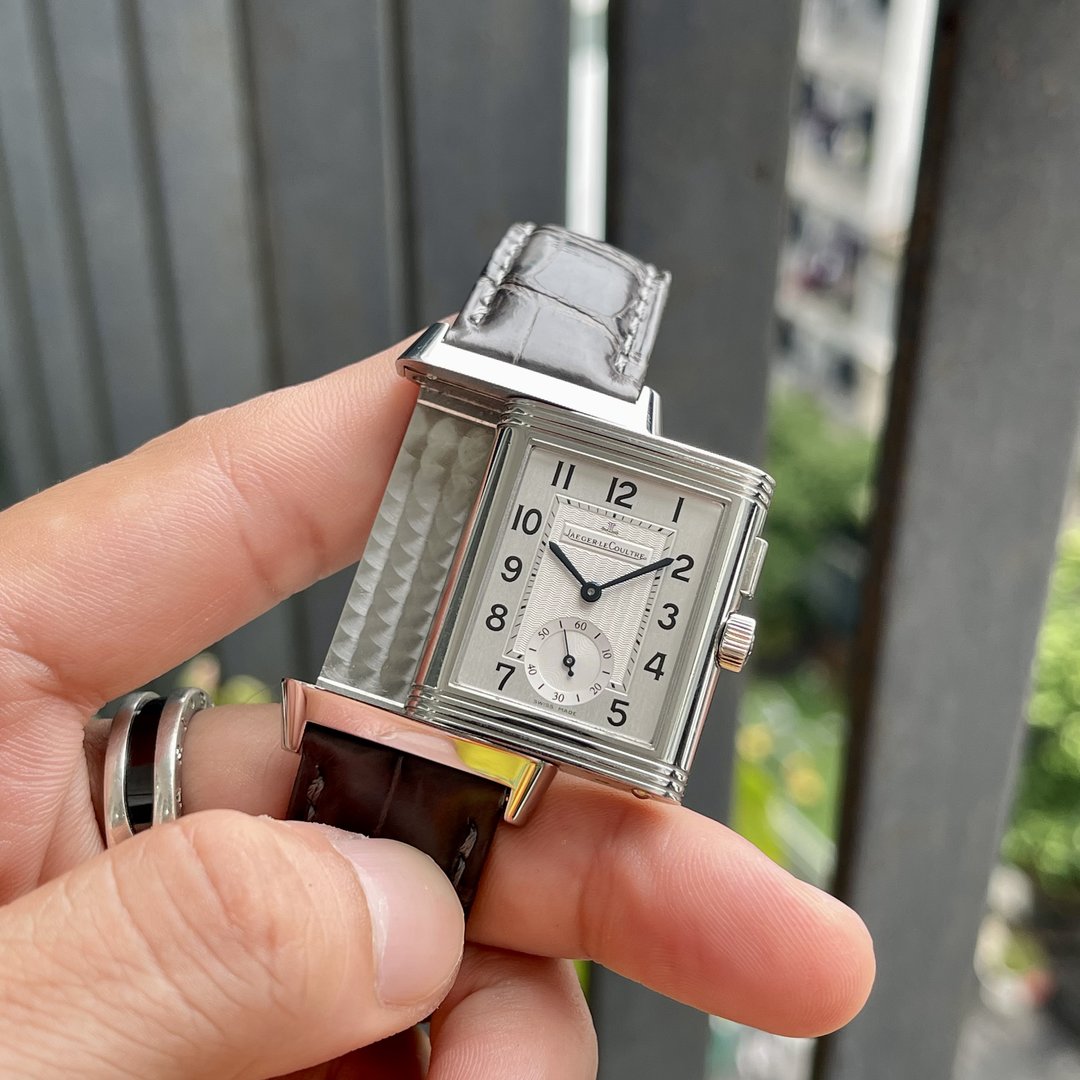 Đồng hồ với 2 mặt số hiển thị 2 múi giờ độc lập và cơ chế lật mặt rất độc đáo, size 26x42mm khoảng 38mm tròn sử dụng bộ máy lên dây inhouse jlc 854/1 tích cót 45h. Đồng hồ đã qua sử dụng xước dăm không cấn móp chỉ còn đh và thẻ date 2017. Bảo hành 2 năm.