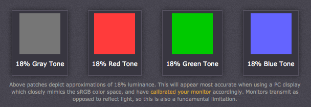 Cái gì tạo thành màu xám trung bình? Trong ngành công nghiệp in ấn thì đó là chuẩn về mật độ mực mà tạo ra phản xạ 18% ánh sáng tới, tuy nhiên máy ảnh hiếm khi tuân thủ điều này. Nói về vấn đề này sẽ cần một chuyên đề riêng, nên trong hướng dẫn và tìm hiểu cơ bản này đơn giản chúng ta cần biết là mỗi camera có một vùng mặc định nơi nào đó là vùng sáng trung bình (tức là phản xạ từ 10-18% ánh sáng tới. Nếu đo một đối tượng phản xạ nhiều hơn hoặc ít hơn sẽ dẫn đến đo sai và do đó ảnh thu được sẽ sáng quá hoặc tối quá.