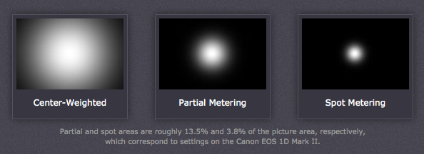 Để đánh giá chính xác mức độ sáng và độ phản xạ khác nhau của đối tượng, hầu hết các máy ảnh đều có vài chế độ đo sáng. Mỗi chế độ tập trung vào khu vực sáng khác nhau; những vùng được tập trung nhiều hơn sẽ có độ tin cậy cao hơn và do đó đóng góp nhiều hơn vào việc tính toán mức độ phơi sáng cuối cùng.