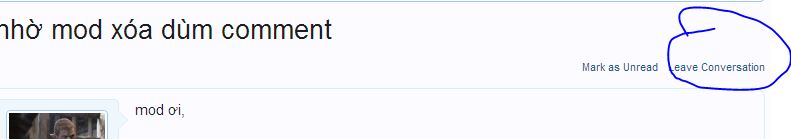 Để xóa tin nhắn PM, các bác cứ vào mổi tin nhắn, chọn dòng chữ "Leave Conversation" bên trên tin nhắn và có thể chọn 1 trong 2 tùy chọn tiếp theo. thế là xong