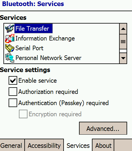 Start/Setting/Connections/Bluetooth/Service/ chọn File Transfer/Advance các bác sẽ thấy phần chọn thư mục đích đến cũng như thư mục chia sẻ khi kết nối Bluetooth.