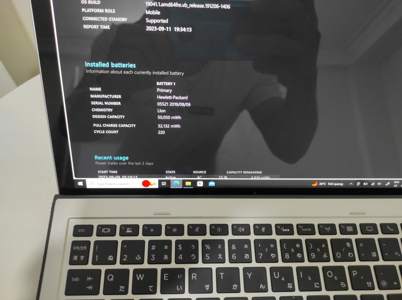 Chip i5 8th, ram 8gb, SSD 256gb, ngoại hình đẹp 98%, xước xát ko đáng kể theo thời gian, Ko cấn móp (chi tiết như ảnh chụp), pin 32wh, xài 4h ok; màn hình cảm ứng 3k sáng đẹp, full mượt, có vết đốm mờ khi khởi động nền đen, nền trắng đẹp, loa to rõ; ircam bảo mật khuôn mặt siêu nhạy, bảo mật vân tay và dùng dc 4g (nano sim); phụ kiện có phím và sạc chính hãng 65w