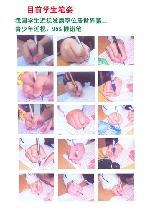 Cô bé này cầm bút sai, đầu nghiêng, ngực tỳ mạnh vào bàn, bàn và ghế ngồi không đúng tư thế, tỳ mạnh thế này ngồi lâu khó thở, tay bút dùng sức tỳ nhiều (nhìn qua nếp nhăn của ngón tay trỏ và độ bẹt ngón tay cái).