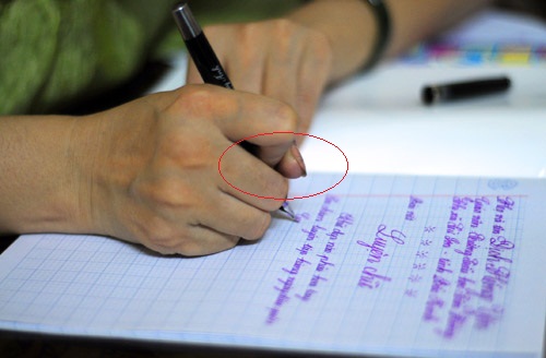 Sau khi sửa xong, có hỏi han và nhận thấy nhà trường, các lớp luyện chữ cũng ít quan tâm đến chuyện cầm bút. Còn cứ viết được chữ đẹp ra là được còn cầm bút đúng sai không quan trọng.