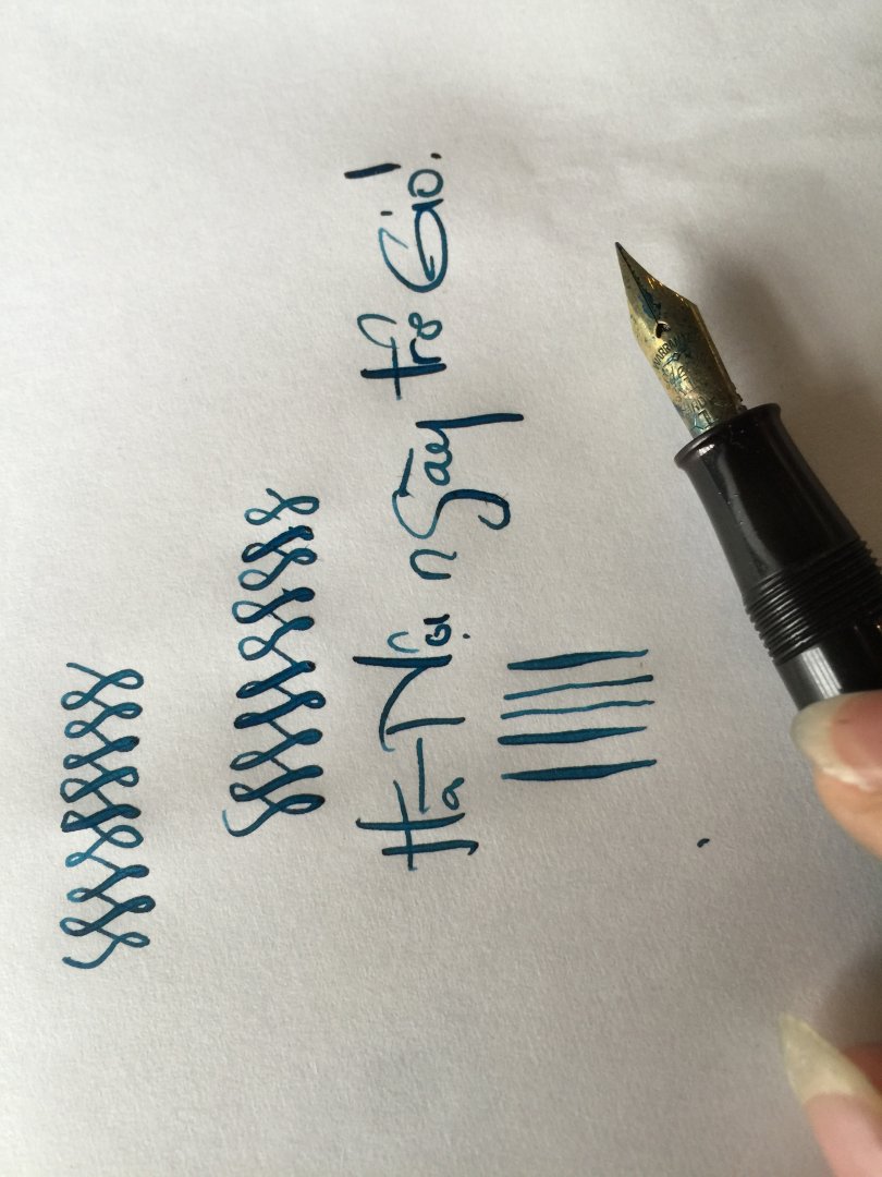 (Hiện em đang dùng Lamy Safari ngòi M, nét hơi rộng bản nhưng muốn vẽ nét mảnh em lật ngược bút lên vẽ tạm)