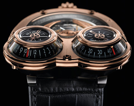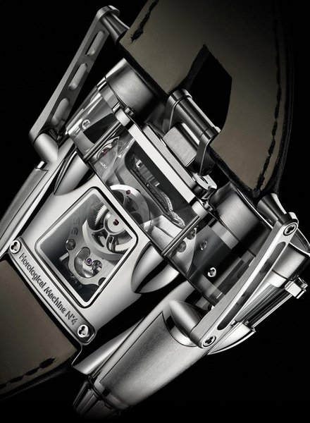 Chiếc HM 4 hiển thị thời gian qua hai ống hình trụ nhỏ dẫn về phía đằng sau, trông rất giống với động cơ của máy bay. “Động cơ” bên trái hiển thị năng lượng dự trữ, còn bên phải là hiển thị giờ phút. Ở mặt trên, bên dưới một tấm sapphire trong suốt, người dùng có thể quan sát thấy cơ chế truyền động cực kỳ phức tạp. cả bề ngoài lẫn bên trong của chiếc HM 4 đều là những tác phẩm nghệ thuật đỉnh cao, hoà hợp với nhau một cách lý tưởng.