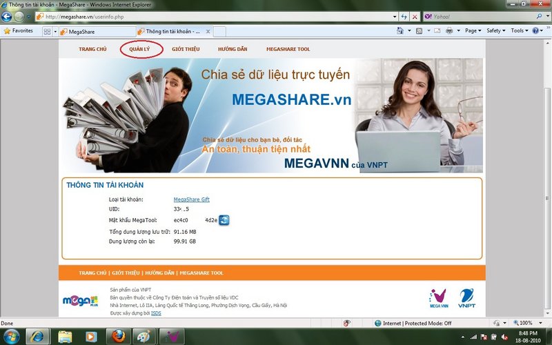 Tình hình là mấy cái site upload và download dạo này chậm không chịu được. Lọ mọ thì cũng tìm được anh này, tuy là ít người dùng nhưng xem ra vẫn nhanh, có thể đáp ứng nhu cầu của anh em. Đó là dịch vụ Megashare.vn