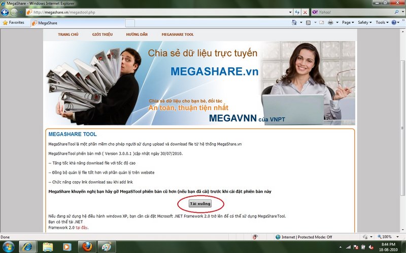 Click vào mục Download để tải trình MegaShareTool về máy, rồi thực hiện việc cài đặt.