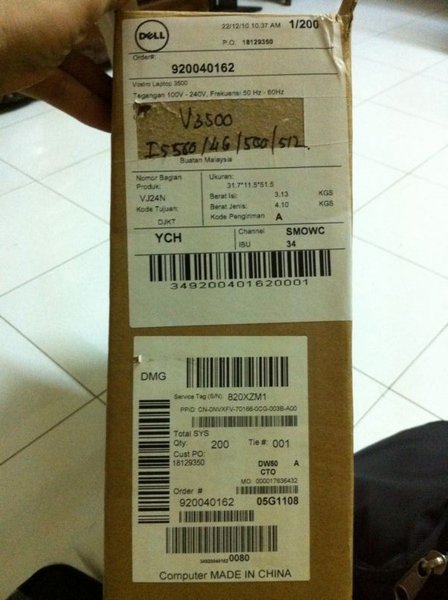 Mình mới mua con Dell Vostro V3500 core i5-560M. Mua của người quen nên là đến lấy cũng ngại nên ko kiểm tra. Mang về để ý thì thấy vỏ thùng có vết cắt thế này