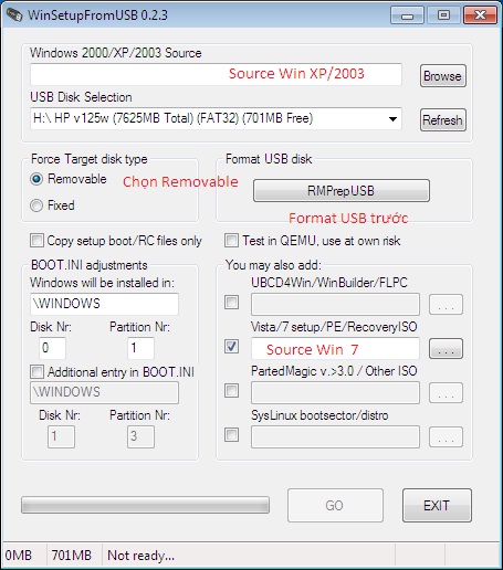 - Khởi động trình WinSetupFromUSB 0.2.3 ( click phải chọn Run as Admistrator nhé ). Xem hình sau :