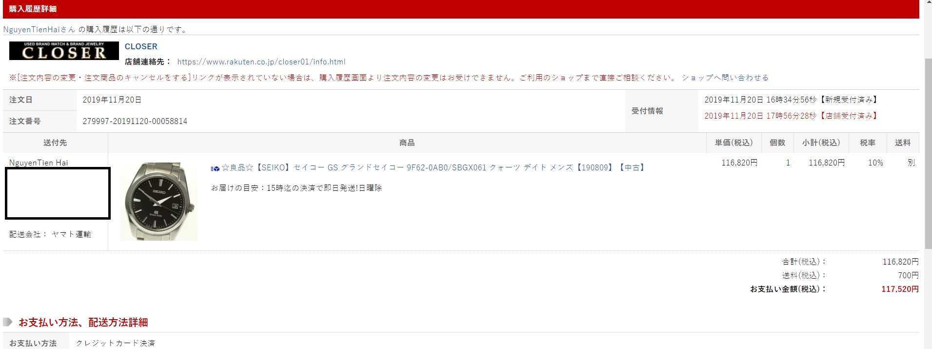 Tên đơn hàng: Đồng hồ