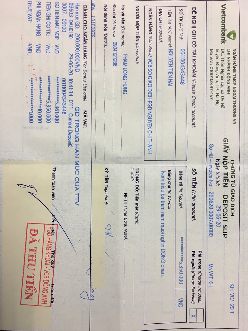 - Ngân hàng Vietcombank chi nhánh Sở giao dịch, Hà Nội, số tài khoản: 0011004343448​