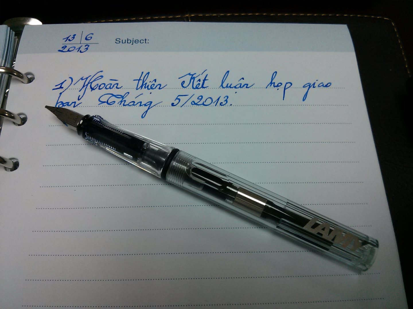 Buổi chiều mình ôm em Lamy Vista để hoàn thiện Kết luận họp giao ban. Thế là xong một ngày làm việc ..