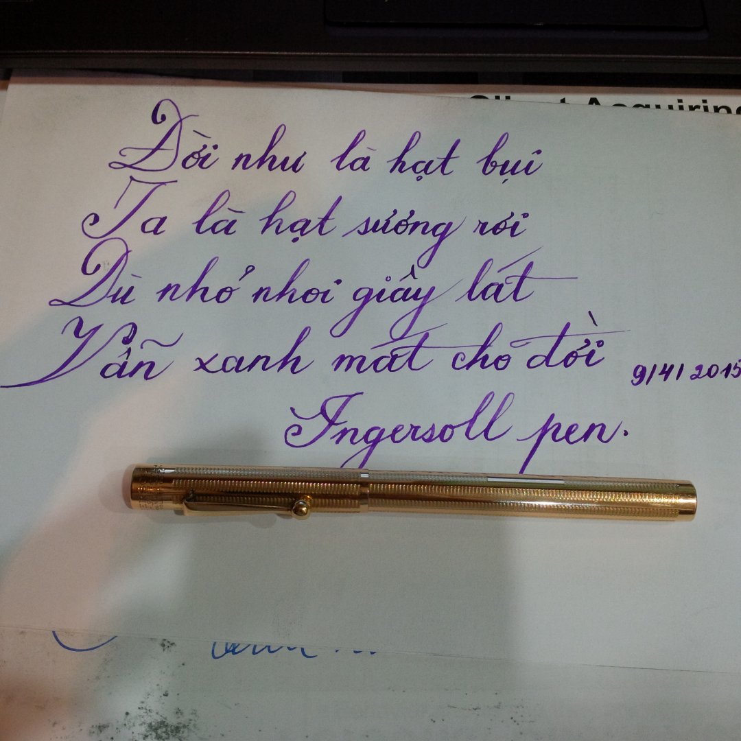 Cây này là cây 1/10 14k gold filled Eversharp Slim Ventura sx từ 1953-1957 là cây bút cuối cùng của Eversharp trước khi bị Parker mua lại đó anh. Cây này có nhiều phiên bản nhưng mắc nhất lúc bấy h là pb này. Ngòi nét F, viết mượt tự bút Đức, ngòi cứng. E định làm review mà đơ quá k làm gì nổi. H mới đi làm về. Anh xem thêm thông tin ở đâyCây này là cây gì thế em?