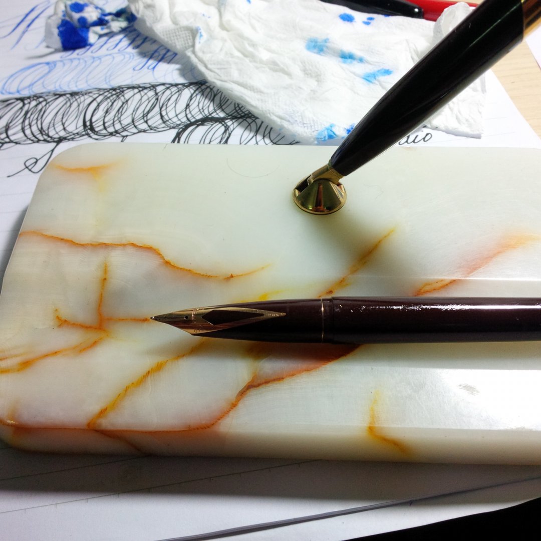 Vầng, em nhìn ảnh đã mê, sa chân vào chốn này thiệt là sai lầm mà...Nó đi kèm bút mà. Mua từ bid đấu giá đó em. Cái này đẹp quá, nhất là miếng đá mable vân đã lắm. Mê lắm