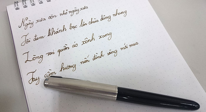 Em làm với nó rồi mới viết đc vậy đó. Kéo tine ra muốn rụng móng tay. Ngòi thép cuứng như đá. Rặng mãi mà k suy chuyển! Viết thì k có cào nhưng inkflow yếu lắm!