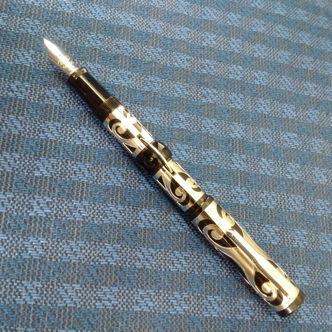 Em chụp và focus vào ngòi chứ không focus vào grip section (cái chỗ cầm bút) và chụp trong điều kiện không flash, phơi sáng, em muốn chỉ tập trung vào hoa văn trên ngòi với hậu cảnh màu đen, có lẽ cái đèn chiếu ánh sáng mạng quá nên phần chiếu trực tiếp vào ngòi bị dư sáng, bác có cao kiến nào nữa không? Em cảm ơn bác nhiều!