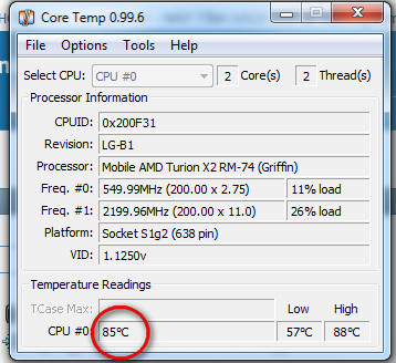 Em ngồi bật 3 ứng dụng trên máy (Yahoo, Mozilla, và Window Media), phần mềm Core Temp báo CPU luôn giữ ở khoảng 81~85 độ. Vậy có phải là quá nóng không các bác?