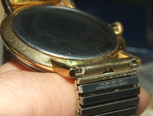- Dây đeo như kiểu vòng đeo tay liền, ko buckle, mặt ngoài: 1/30 10KT RGP tops, mặt trong: Stainless steel backs