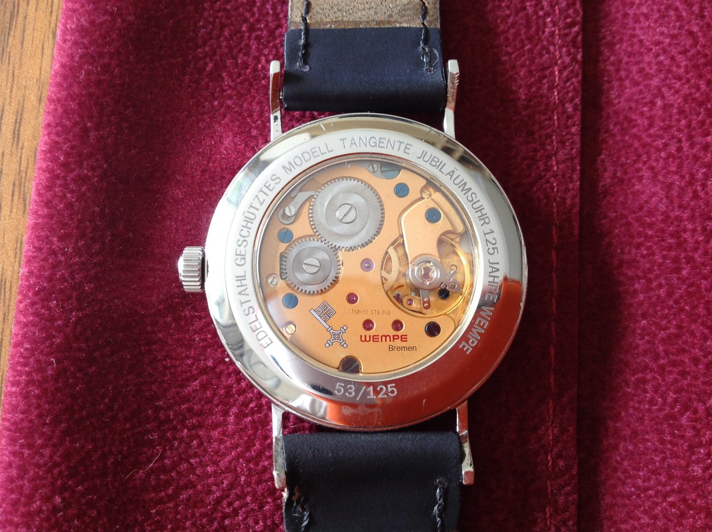 Vâng, nó kỷ kiệm 125 năm của Wempe nên mẩu này chỉ có SX 125 chiếc trên toàn thế gioi. Mổi chiếc có 1 logo khác nhau được in trên máy -mổi chiếc đều khác nhau và cho vùng khác nhau và máy 7001 được mạ vàng thay vì là may bình thường màu trắng. Chiếc này vùng Bremen. số 53/125.