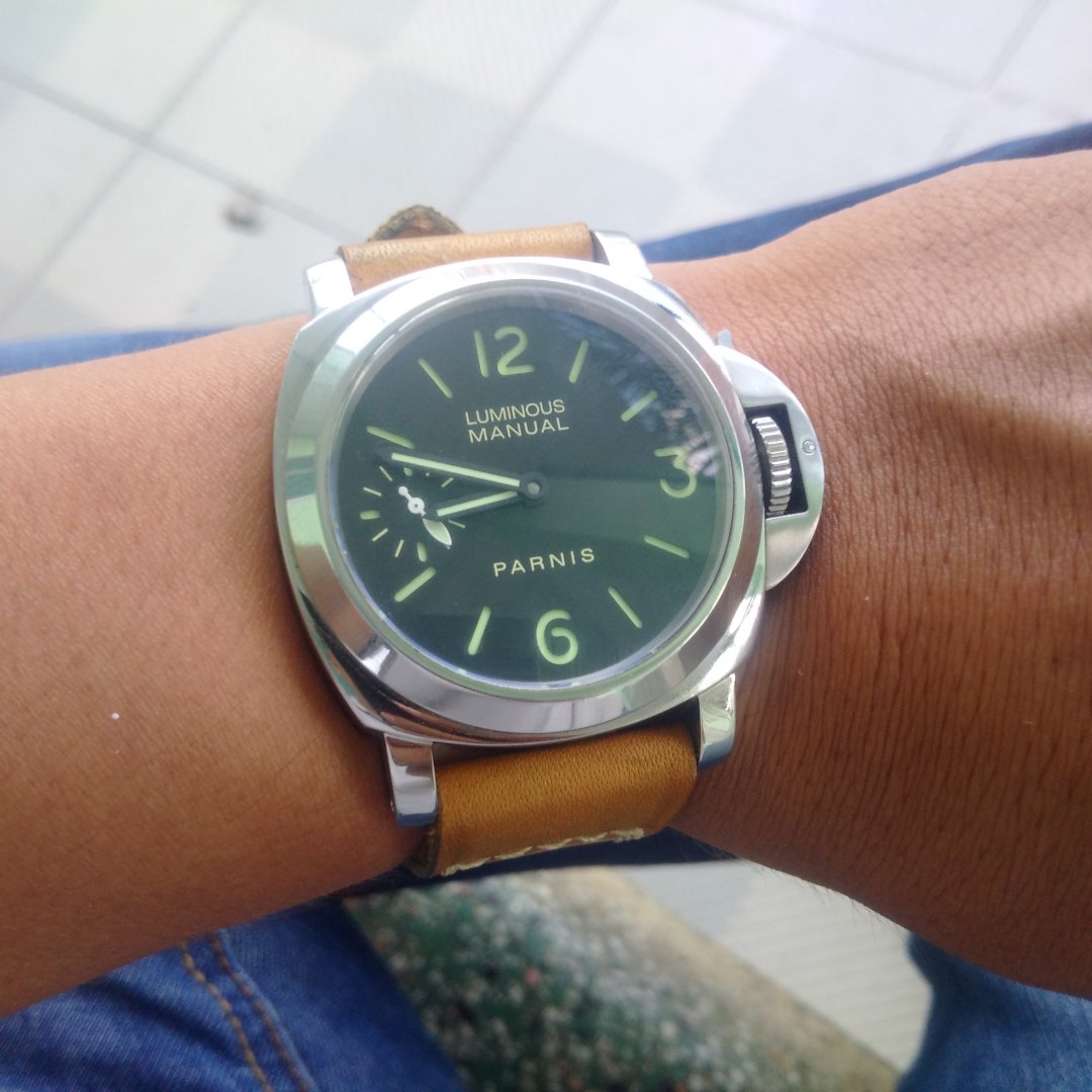 Có 1 em Parnis đeo đi làm, ko dám đeo hàng Au tiếc đứt ruột. Em nó đây, đeo cảm giác như hàng xịn, chắc do sợi strap Gunny 74 quá tuyệtHiện giờ em chưa đủ sức để chơi hàng Au bác à dù là secondhand, bác có con nào homage để lại e chơi thử nhé.
