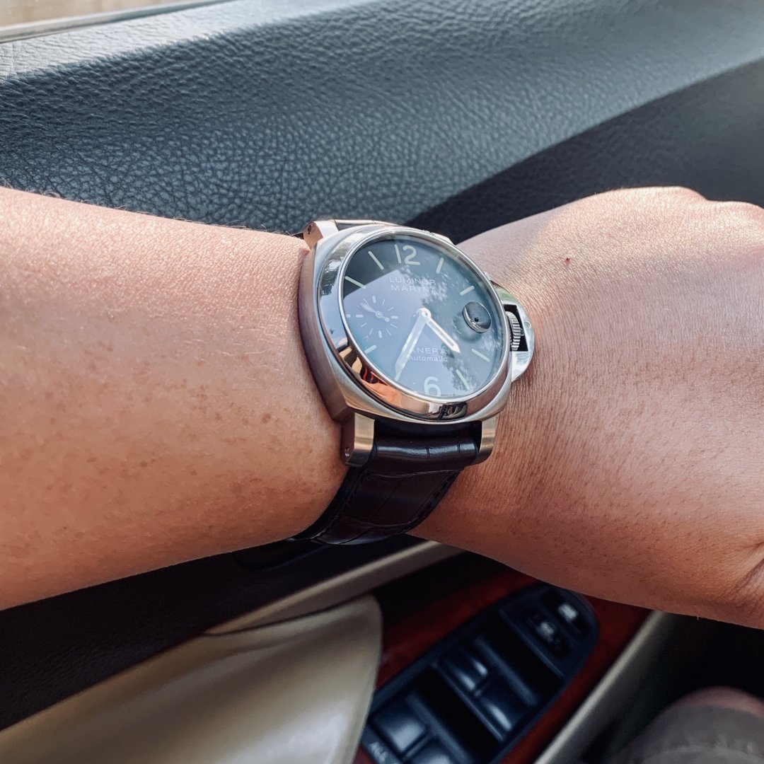 Khoá bướm zin hãng đó bác :). Em có mua thử mấy khoá lô kiểu thường nhìn mang lên nhìn thô quá :(. Panerai kính cong nên khúc xạ dưới nắng đẹp quá các bác ạ :)