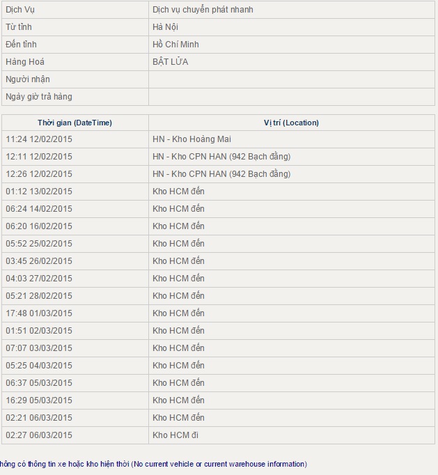 e chuyển tiền vào ngay ngày hôm sau và bác nói chuyển hàng luôn cho e,đến nay vẫn ko nhận được hàng,nt cho bác,bác nt lại bill thì hôm nay bác mới nt lại,e check bill thì ra thông tin bên dưới.E rất ko hài lòng với cách làm việc của bác.E xin phép đc trả lại hàng cho bác.