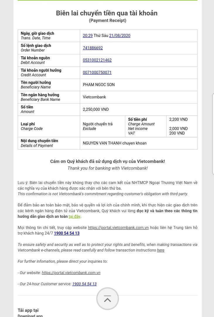 Mình mới chuyên, nhưng quên ghi nội dung chuyển tiền "thanhCD5 + SĐT" bạn lưu ý dùm cái. Tks!