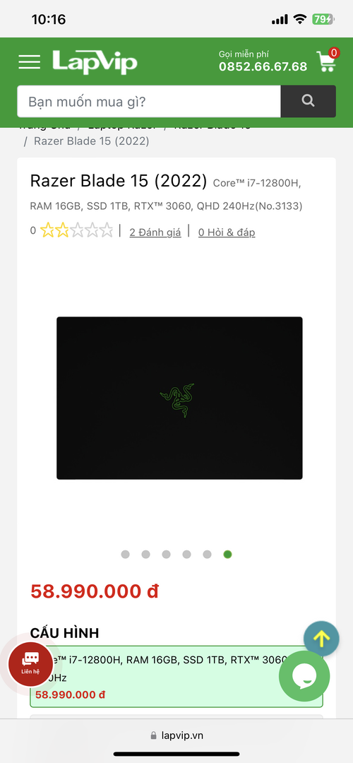 Razer Blade 15 model 2022 new seal nhập US giá chỉ 35 triệu (giá siêu thị 58.990.000₫)