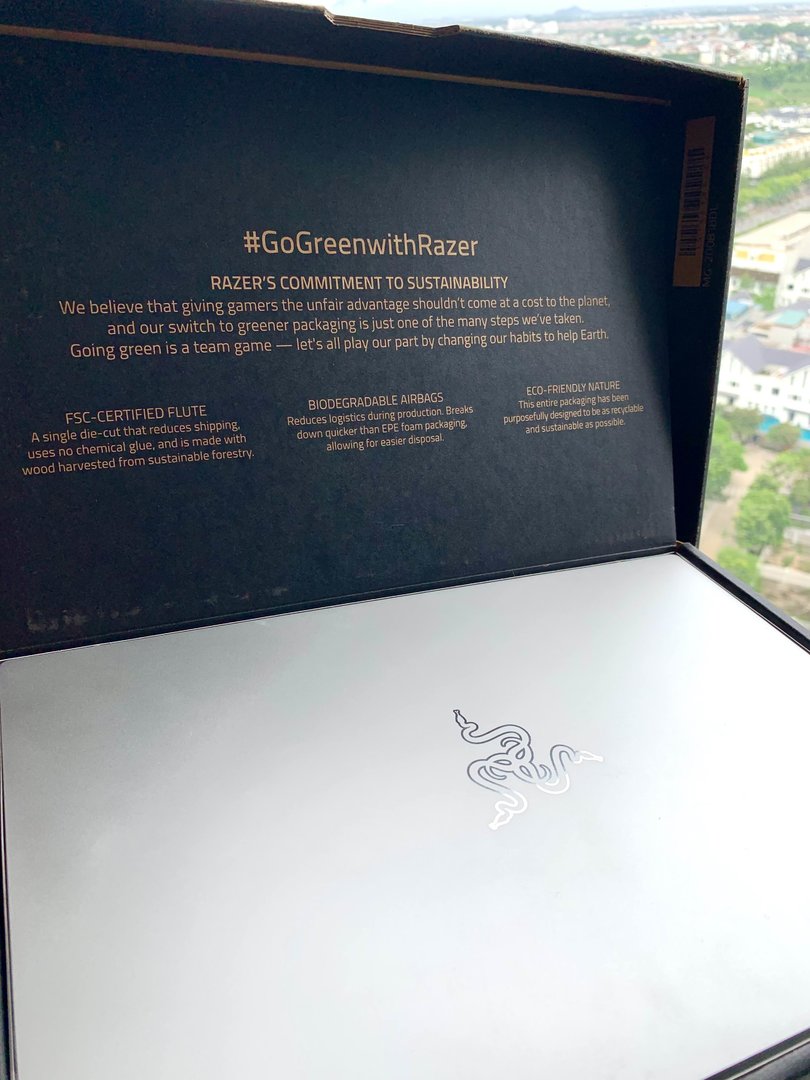 • Em Razer Book này có thiết kế vuông vức kết hợp cùng bộ vỏ nhôm nguyên khối hoàn thiện cắt CNC sắc nét mang tới trải nghiệm cầm nắm rất chắc chắn và mạnh mẽ.