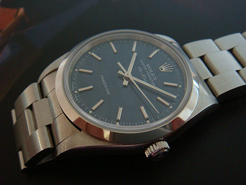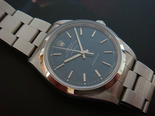 Đầu tiên là Rolex Air King đời cũ sau 2000 với Ref number là 14000, kính Sapphire với mặt không có số thanh lịch. Chiếc 14000 này xài máy Rolex Cal. 3000. Chống nước đến 100m/330 feet.