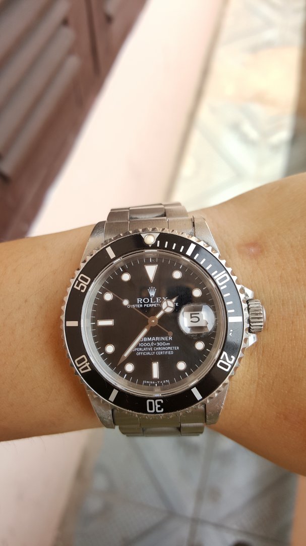 Con này fake, mặt trong vành của đh, thường có in chữ rolex chạy dọc vòng tròn, phía dưới chổ 6g sẽ có serial number, con này e hoàn toàn kg thấy chữ rolex... ngoài ra là kg có chữ "swiss made" mà có cái chữ gì lạ quá...hihihicái Sub này vặn được mà bác.