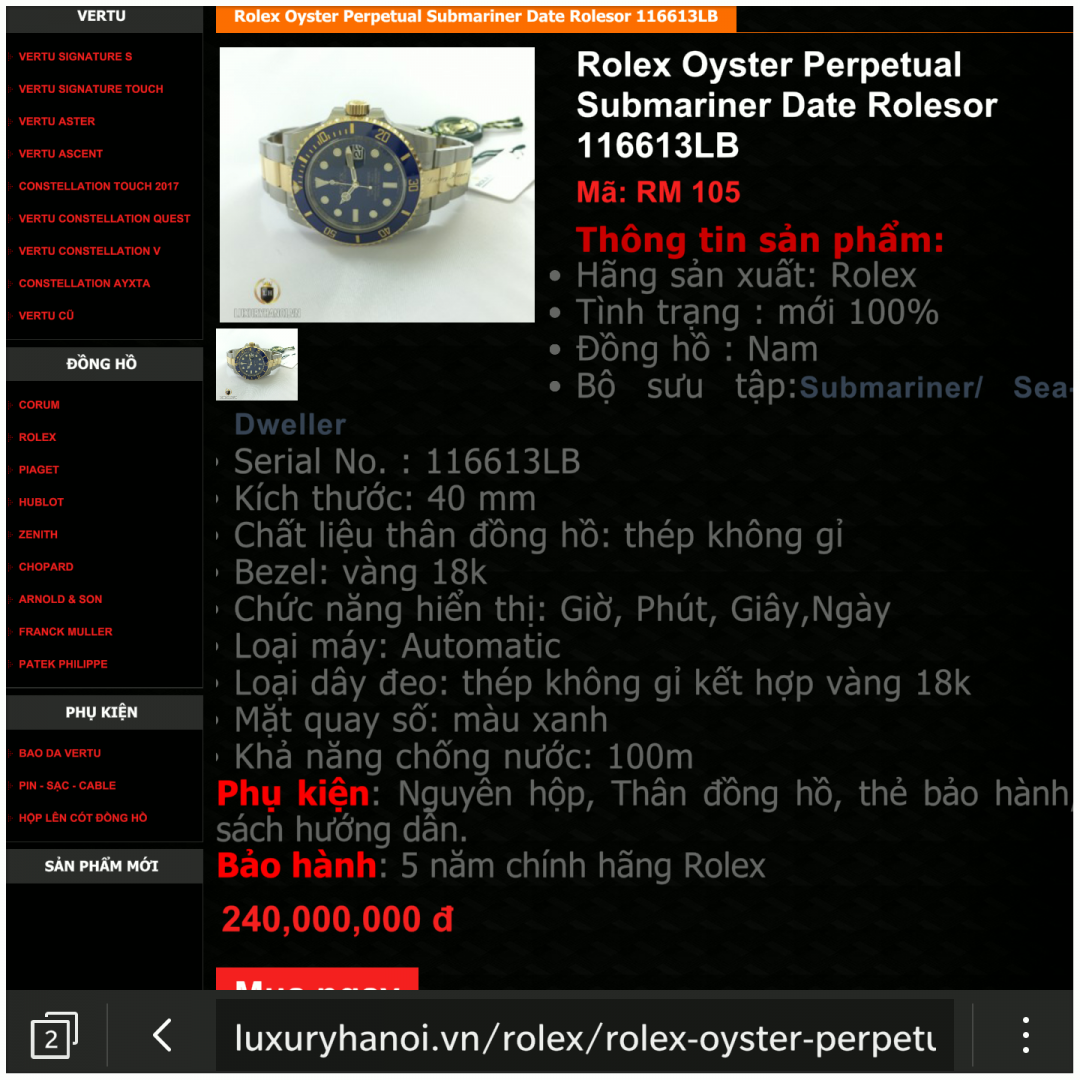 Các bác có tìm hiểu về rolex bán ở vn không? Ngoài botiquei chính hãng em không nói còn trên trang mạng mỗi nơi một giá mà ông nào cũng bảo chính hãng hết, theo thông tin hãng em được biết thì chỉ có đlý uỷ quyền mới đựoc bán hàng chính hãng mà giá chiết khâu thi tốt nghiệp rất ít chỉ được khoảng 5% theo gia niêm yết yết kiến ủa hãng là cùng. Nhưng sao ở vn có nhieu trang đăng bán chính hãng thế mà thậm trí giá còn rẻ hơn mua từ anh hay từ mỹ chả nhẽ, nó là hàng gì vậy. Kể cả họ mua trên trang trôi nổi của mỹ như jónhop thì cũng ko có giá như họ bán. Mà vấn đề họ bảo hàng mới tinh bao hành 5 năm như hãng mà họ ko phải là đại lỹ uỷ quyền? Một câu hỏi mà anh chung ta đều phải tìm hiêu