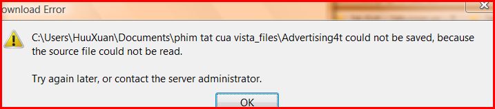 Tui vào trang web HHVN rồi save lại 1 trang web nào đó, thì có thông báo là không save được ( nhưng trong folder muốn save vídu tui save vào document ) thì trang web đó đã nằm đó rồi, làm lại trang khác cũng vậy, tức là báo không save được nhưng sự thực là đã save rồi ??????